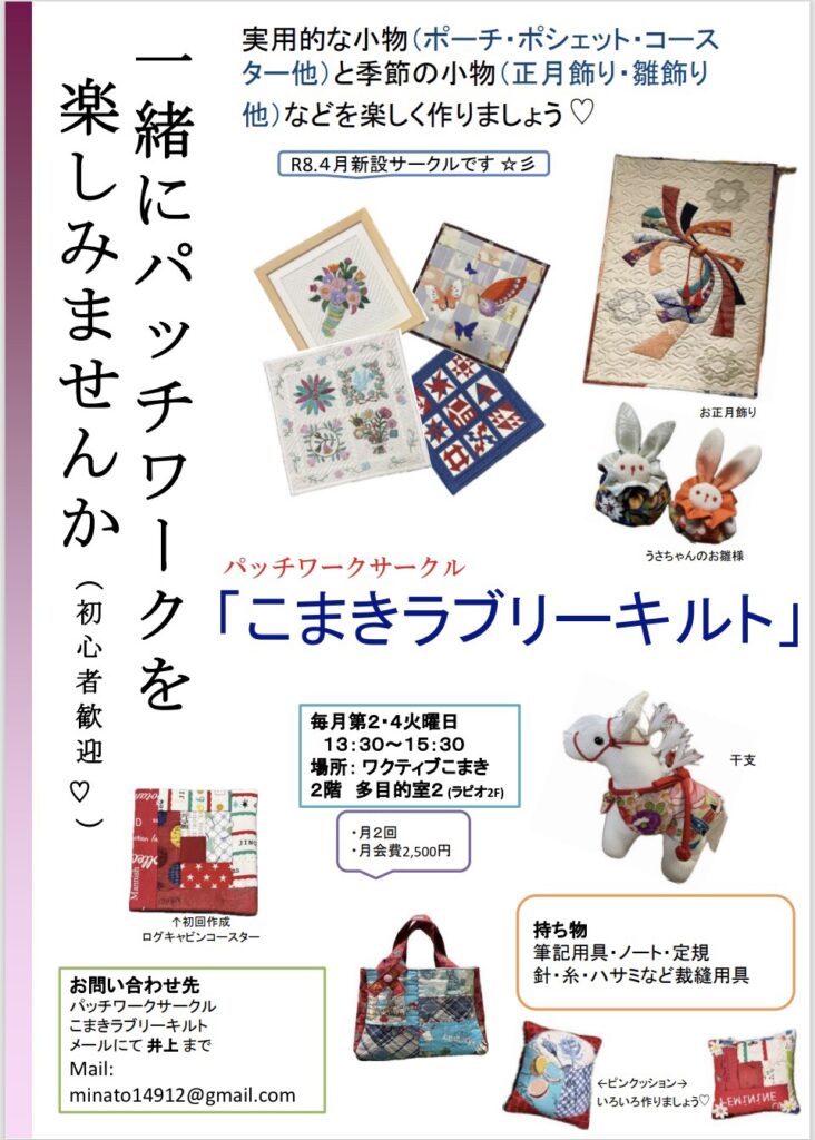 【こまきラブリーキルト】からサークルメンバー募集のお知らせ