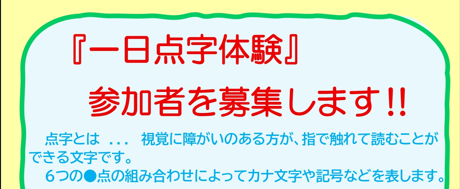 【点訳グループ「たんぽぽ」】から「一日点字体験」のお知らせ