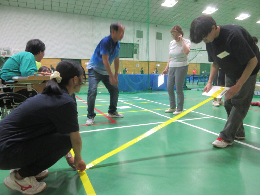 活動は、①コートの準備 ②ボッチャの実践 ③片付け の流れで行いました。